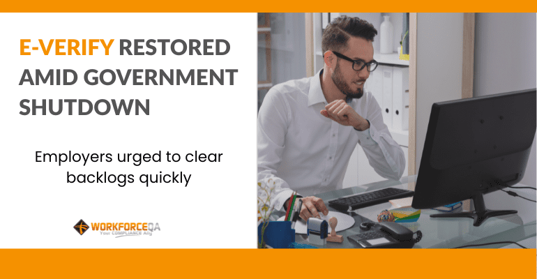 Key takeaway: Form I-9 timelines never paused, but E-Verify case creation did. Now that E-Verify is up, prioritize backlog submission and document everything. USCIS